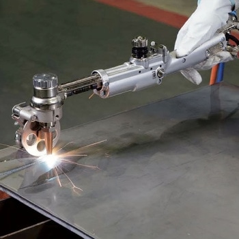 用途ハンディオートⅡは手持ち吹管と自動機の良さを併せ持った手持ち式の半自動式の切断機です。セット内容【ハンディオート】補助車輪・開先車輪・小円コンパス・案内レバー・専用ケース、【本体】切断機本体「ハンディオートⅡ」・ACアダプター付ケーブル(5m)・標準車輪・取扱説明書・ヒューズ・スパナ・火口掃除針・火口 106型#0、1、2全長(mm)500質量(kg)2.7回転数(min-1[r.p.m])1.2~4.2電源AC100 50/60Hz~240V 50/60Hz対応アセチレン切断板厚(mm)5~30駆動方式フリクション駆動走行速度(mm/min)150~530(標準車輪使用時)速度制御モードトランジスタ制御