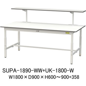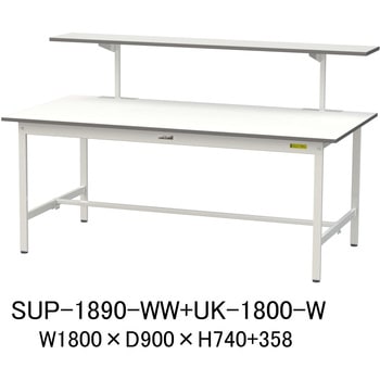 軽量作業台/耐荷重150kg_高さ調整_半面棚付_ワークテーブル150シリーズ_低圧メラミン天板山金工業