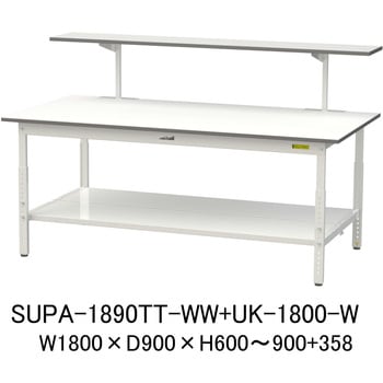 軽量作業台/耐荷重150kg_高さ調整式_架台付_全面棚付_ワークテーブル150シリーズ_低圧メラミン天板山金工業(1件のレビュー)
