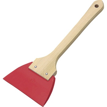 ゴムべラは、食品関係では器に付いたものを取り除いたり、ケーキの生地を混ぜ合わせたりするときに使われるツール。建築・土木・塗装内装用品としては、タイルの目地や容器・機械などにこびりついたものをかき集めたり、汚れを落としたりするときに使われます。柄付ゴムベラには長柄のものもあり、塗料缶についている塗料を削ぎ落とす時やデザイン壁にパターンを描く際に便利です。鈑金用の両刃型のゴムベラもあります。柄付きゴムベラは、ヘラの部分の材質は天然ゴム、柄の部分の材質は木です。