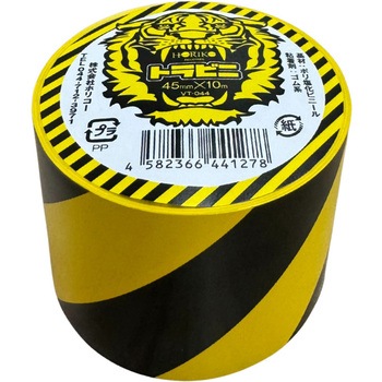危険表示用トラ柄のビニールテープです。貼るだけで簡単に危険表示が可能! 工場・工事現場・立入禁止箇所・駐車場での区画整理・災害時の注意喚起など、様々な場面で活用いただけます。