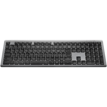 用途軽快ながら芯のある打鍵感と、ブレの少ない精密さを実現。シンプルな美しさと実用性を兼ね備えたパンタグラフキーボード”Precisionist(プレシジョニスト)”シリーズのフルサイズキーボードです。 V型構造で、軽快かつブレが少ない繊細な打ち心地を実現。キートップをV型のパンタグラフで支持する特殊な構造が、キーストローク1.5mmの薄型設計と、グラつきの少ないはっきりとした打鍵感を両立します。 指先にフィットする、人間工学に基づいたキートップ形状。全てのキーに指先の丸みに沿う凹みをつけ、打ち心地の良いデザインに仕上げています。キーの役割や配置に応じて形状を最適化し、手元を見なくてもスムーズなタイピングが可能です。 最薄部約8mmの超薄型設計に加え、かな表記を省いたシンプルなキー印字を採用。モダンなデスクにも調和するスタイリッシュなデザインに仕上げました。 複数のデバイスをひとつのキーボードで操作可能。最大4台のデバイスに接続できる、マルチペアリングに対応しています。Bluetooth(R)接続で3台、USB無線2.4GHzで1台まで接続機器を本体に保存でき、使用シーンに合わせてデバイスを瞬時に切り替えられます。 さまざまなOSで使用可能。Windows/macOS/iOS/iPadOS/ ChromeOS /Androidに対応。それぞれに最適化した入力モードを搭載しています。 スペースキーの右側にCopilotキーを搭載。Microsoft社製AIアシスタント機能「Copilot in Windows」を、ワンアクションで瞬時に起動できます。 ※ご使用のパソコンが「Copilot in Windows」を搭載している必要があります。 Webブラウザやメディアプレーヤーの機能などを専用キーを押すだけで実行できる15種類のマルチファンクションキーを搭載しています。 機能性に優れ、効率的な入力作業を実現するテンキー搭載のフルサイズです。 電池交換が不要な充電式。繰り返し使えるリチウムイオン電池を搭載しています。USB Type-C(TM)ポートから付属の充電ケーブルで充電でき、1回の満充電で最長約7カ月間使えます。 ※ご使用状況により使用できる期間は異なる場合があります。 上部のLEDランプで接続先の状況が確認できます。また、電池残量が低下するとバッテリーマークが点滅するため、充電時期が分かります。 姿勢に合わせて傾斜角を2段階で調整できる角度調整スタンドが付いています。スタンドにはキータッチを安定させる滑り止めが付いています。 ※USB Type-C and USB-C are trademarks of USB Implementers Forum. 自社環境認定基準を1つ以上満たし、『THINK ECOLOGY』マークを表示した製品です。 廃棄物削減に取り組み、製品に同梱する取扱説明書等をペーパーレス化した製品です。 環境保全に取り組み、製品の包装容器におけるプラスチック重量を、社内基準製品より20%以上削減した製品です。セット内容キーボード本体×1台、レシーバー×1個、充電用ケーブル[USB-A⇔USB Type-C/1.5m]×1本、クイックスタートガイド×1枚質量(g)【キーボード】542(ケーブル含まず)【レシーバー】2電源内蔵リチウムイオン二次電池(充電式)対応OSAndroid 15、Windows 11/10、iOS 18、iPadOS 18、macOS Sequoia 15、ChromeOSコネクタ形状【レシーバー】USB-A プラグ【キーボード本体】USB Type-C(TM) ポート接続方式USB2.4GHz無線/Bluetooth(R)無線分類フルサイズ対応【Bluetooth】Bluetooth Low Energyに対応したWindows、macOS、iOS、iPadOS、ChromeOS、Android搭載機【USB】USB-Aポートを装備したWindows、macOS、ChromeOS搭載機外形寸法(幅W×奥行D×高さH)(mm)【キーボード】436×130×16(スタンド含まず)【レシーバー】15×19×6機能マルチファンクションあり / レシーバー収納対応(USB2.4GHz無線:1台 / Bluetooth:3台) / 接続先切り替え対応(USB2.4GHz無線:1台 / Bluetooth:3台)キー数110キーキー配列日本語配列保証期間1年間電池寿命1回の満充電で最長7カ月 ※ご使用状況により異なる場合があります。キーストローク(mm)1.5電波到達距離(m)最長10 ※ご使用環境により異なる場合があります。キーパンタグラフBluetoothBluetooth Low Energy電波周波数2.4GHz帯