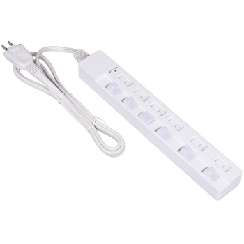 用途安全機能を満載した個別スイッチ付きOAタップ定格AC125V・15A・最大1500Wまでコード長さ(m)2本体質量(g)425プラグ2Pスイングブラグ本体寸法(幅W×奥行D×高さH)(mm)223×45×29ブレーカ1500W ※ブレーカーが作動した場合は電気製品を外し、リセットボタンを押せば復帰します。コンセント2P4個口耐雷サージ6000V