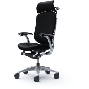 コンテッサセコンダ、可動肘、可動ヘッド、背座革、ハンガー付、ランバー無、ブラックB、ポリッシュ、脚ポリッシュ、ウレタンオカムラ(岡村製作所)