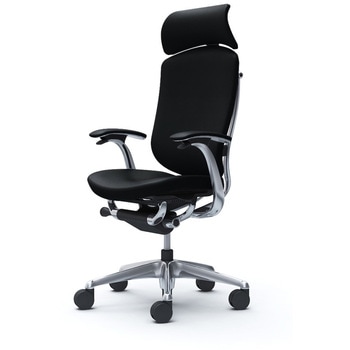 コンテッサセコンダ、固定肘、可動ヘッド、座革、ハンガー付、ランバー無、ブラックB、ポリッシュ、脚ポリッシュ、ウレタンオカムラ(岡村製作所)