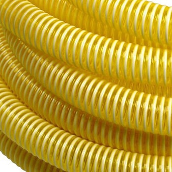 特殊耐油配合の軟質PVC樹脂を使用。補強繊維入りで耐圧性能に優れています。コルゲートタイプで柔軟性に優れています。ゴムホースと比較して軽量で取り扱いが容易です。