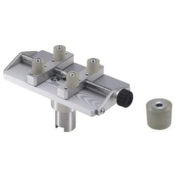 トルクゲージHTGA/HTGS/eHTシリーズ、手動回転補助治具SDTシリーズ用幅広軽量テーブルです。 直径10~100mmの小型サンプルを固定できます。 固定ピンの選択が可能で、ボリュームダイアル、モーター、ボトル状の容器、おむつなど様々なサンプルに対応します。
