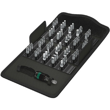 セット内容絶縁ドライバーハンドル 003990(9×98mm)、絶縁マイナスドライバービット 003400・003406・003407・003408(0.4×2.5・0.6×3.5・0.8×4・1×5.5mm)、絶縁プラスドライバービット 003413・003414(PH1・2)、絶縁トルクスドライバービット 003431・003437・003438・003439(TX10・15・20・25)、絶縁ポジドライバービット 003455・003456(PZ1・2)、スクリューグリッパー 4.5-6×41mm、マイナスドライバー 110000(0.4×2.5mm)、両口スパナ 003760(10×13mm)、スピードラチェット 003500(1/4”×152mm)、ビットアダプター 003529(1/4”×37mm)、エクステンション 003525(1/4”×75mm)、1/4”ソケット 003504・003505・003506・003507・003509・003510・003511・003512(5.5・6・7・8・10・11・12・13mm)、ユニバーサルビットホルダー 134480(1/4”×50mm)、プラスビット 072070・072072(PH1・2)、六角ビット 056315・056320・056325・056330(3・4・5・6mm)、トルクスビット 066488(TX25)、面ファスナーストリップ 50×240mm