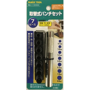 取替式パンチセット 7ピース 4.5-5.0-5.5-6.0-6.5-7.0-8.0mm FAMILY TOOL取替式パンチセット 7ピース 4.5-5.0-5.5-6.0-6.5-7.0-8.0mmFAMILY TOOL