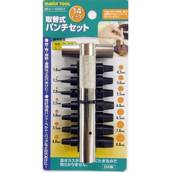 取替式パンチセット 14ピース 1.0~4.0 / 4.5~8.0mm FAMILY TOOL取替式パンチセット 14ピース 1.0~4.0 / 4.5~8.0mmFAMILY TOOL