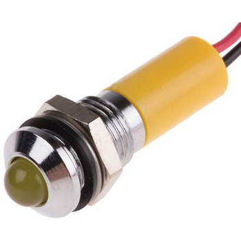 定格電圧 = 24V dcライト出力色 = 黄実装ホールサイズ = 8mmランプタイプ = LED終端タイプ = リードワイヤIPレーティング = IP67ベゼルスタイル = 突起ベゼル色 = クロム定格電流 = 20mA強度 = 40mcd長さ = 22.5mmUL. RS Pro 8 mm LEDインジケータ、IP67. RS ProのこれらのLEDはIP67等級で、パネル取り付け用に設計されているため、屋外環境を含むほとんどの環境に適しています。これらの製品は、-40~+85 ℃の幅広い温度範囲に対応するので、潜在的な用途の数が増えます。これらの5 mm LEDは、8 mmのパネル切り抜きを必要とし、固定ナットとスプリングワッシャが付属しています。これらの製品は光沢クロムベゼルを備え、各種の定格電圧とベゼルスタイルを用意しています。どのモデルも高い信頼性と優れた品質を誇ります。特長と利点. . 8 mmパネル取り付けLEDインジケータ . 5 mm着色拡散エポキシレンズ又は5 mm無色透明超高輝度LED . 光沢クロムベゼル . 突出型、埋込型、平面型のベゼル . 12 → 28 V dc . ワイヤ終端 . IP67等級のシール構造 . 視野角: 最大100 ° . 想定寿命: 100,000時間 . 動作温度範囲: -40 → +85 ℃. これらのインジケータはどのような保護機能を備えていますか.. 各LEDインジケータは、IP67の保護等級です。完全防水ではありませんが、埃やその他の小さな粒子から完全に保護されます。また、最大で30分間、水に完全に浸漬(最大水深1 m)することもできます。この機能がどのように使用されるかは、用途によって異なりますが、上記のガイドラインに正しく従えば、LEDはスムーズに動作し続けます。LEDを選択する理由. LEDの主なセールスポイントには、長寿命と低消費電力がありますが、他にも以下のようなさまざまな理由が考えられます。温度 - LED は、白熱灯やネオンライトと比べて、発熱がはるかに低くなっています。方向性 - LEDは、一方向にのみ発光するため、反射板などの追加のコンポーネントの必要性が低減します。ただし、LEDインジケータが回路基板の信号として使用される場合、これは該当しません。コスト - 一般的に、LEDは標準的な電球やパイロットライトに比べて供給量が多いので、購入や運用に関してコスト効果が高いソリューションです。 このLEDインジケータを操作するときは、適切な直列抵抗などの電流制限装置を必ず使用してください。インジケータの用途. インジケータの用途は、完全にユーザー次第です。回路基板に固定して、押しボタンとスイッチに取り付けることができます。主に、これらのタイプのインジケータは、回路基板と電子設計で使用されます。これは、車の回転信号など、他のタイプのインジケータと比べて比較的小さなサイズであるためです。これらのインジケータに固定具は付属しますか.. 各LEDインジケータには、固定ナット、ワッシャ、ガスケットが付属しています。迅速かつ簡単に取り付けられます。