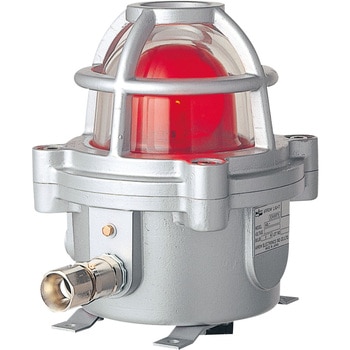 Φ215、直付けタイプ、防爆、危険物第1種指定場所で使用可能な耐圧防爆型 IEC規格に順応した耐圧防爆構造の回転灯です。(構造規格:Exd II BT5、社団法人産業安全技術協会型式検定番号:第TC17095号)第1種危険場所にて使用可能です。グローブは硬質ガラスとメタクリル樹脂の二重構造で、さらにガードによって保護されています。ボディはアルミニウム合金を採用し、焼付け塗装処理を施しています。端子箱の開口部を広く設計しているため、結線が簡単です。計算された反射鏡の曲面とハイテクメッキにより、小型ながら強力に閃光します。予備の電球を1個付属しています。保護特性は、IP65です。(正方向取付け時)