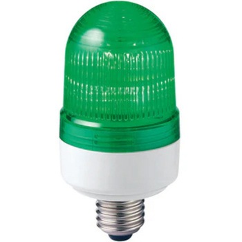 Φ64、電球ソケット、点滅 / 点灯、電球ソケットにそのまま取付けられる 電球機器(E26)にそのまま使用できるランプソケット式のLED表示灯です。独自の反射構造を採用しているので、側面方向からだけでなく、上方向からの視認性も優れています。本体内蔵のディップスイッチで、点灯または点滅動作の切り替えが可能です。グローブは衝撃に強いポリカーボネート樹脂を採用しており、独自のレンズカットで美しく高い視認性を確保しています。保護特性IP54(防水ソケットおよび防水スポンジ使用時)です。