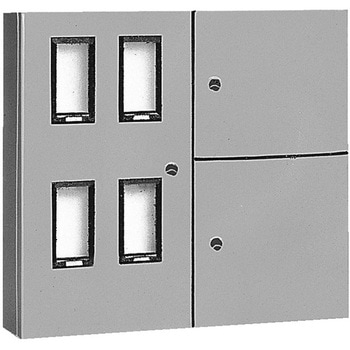 有効深さ(mm)(ドア下)170、(ハンドル下)140材質鉄板製保護等級IP44構造水切・防水・パッキン付使用ハンドルC-30FL(右開 封印キーハンドル)/C-30FR(左開 封印キーハンドル)使用場所屋内外兼用、露出形キャビネット板厚(mm)ドア1.6、ボデー1.6、屋根1.6取付基板木製基板 WHM部25mm、スイッチ部15mm/方眼目盛付