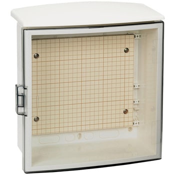 色クリーム(マンセル2.5Y9/1近似)ドア:スモーク色材質ボデー:ABS樹脂、ドア:スモークアクリル樹脂保護等級IP33D構造スモークアクリルドア付使用場所屋内外兼用、露出形ドア片扉取付基板木製基板 15mm/方眼目盛付