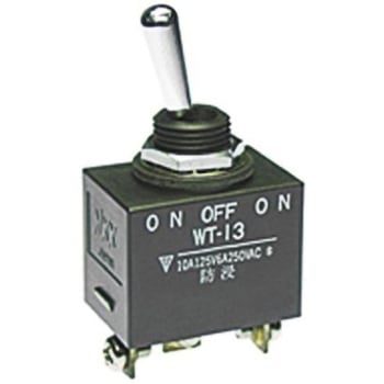トグルスイッチ ラッチ 単極双投(SPDT)パネルマウント 10 A @ 125 V ac 10 A @ 30 V dcNKKスイッチズ(旧:日本開閉器)