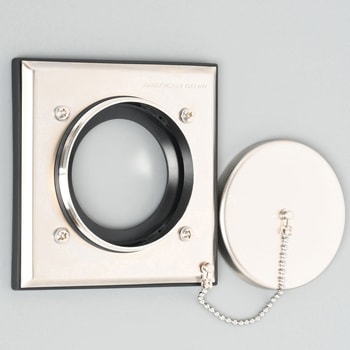 コンセント使用時には別売の防水丸蓋を、未使用時には付属の平蓋をかぶせることにより、電源部分にIP65(耐じん・噴流形)の性能を持たせることができるプレートです。