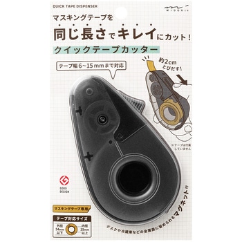 テープを素速く送りだし、軽い力で切り口をキレイにカットできるマスキングテープ専用のディスペンサーです。スライダーを1回引く毎にマスキングテープを約2cm送りだすので、均一の長さで連続してカットできます。テープを引っ張り自由な長さに引きだすことも可能。テープ幅6mm~15mmの様々なサイズが使用できます。マグネットが内蔵されているため金属製のドアや棚、机の脚などに留めて保管することができます。店舗やオフィスといったビジネス用途はもちろん、ご家庭でのキッチン冷蔵庫内や資料の整理整頓用のラベリング作成にも大変便利です。