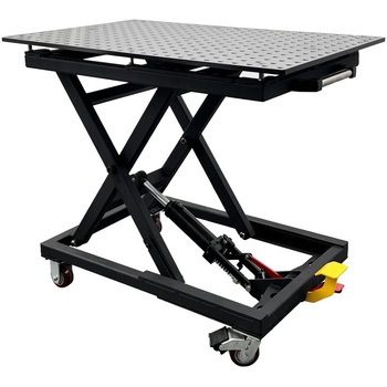 オリジナルのライノカートと同サイズの1200mm×750mmのテーブルトップを装備したこの溶接テーブルは、フットペダルを利用して楽に上げ下げし、溶接プロジェクトに最適な作業高さを実現できます。窒化処理によりスパッタ付着軽減と耐久性が優れます。テーブル上のどの位置でもクランプ可能、正確にセットアップできます。