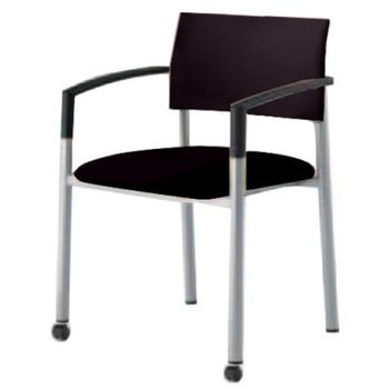 アルフォルム3 4本脚 ブラック肘付 背張りタイプ シルバーフレーム 前脚キャスター付オカムラ(岡村製作所)