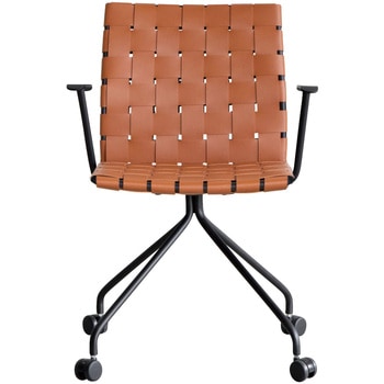 レザーを編みこんだ座面とスチールフレームで構成された、モダンなキャスター付きのデスクチェアです。ボンデッドレザーファイバーは、革の端材等をほぐして樹脂で固めて再生成した、天然皮革の雰囲気が味わえつつも、素材も無駄にしないエコロジーな素材です。