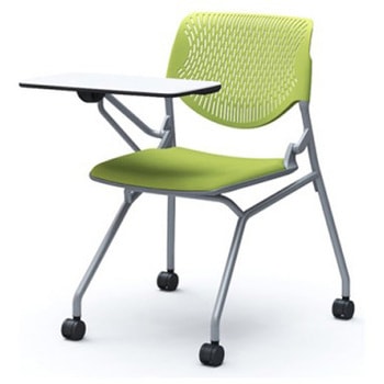 ルナ ネスティング 肘無 テーブル付 背パッド無 グリーンシェル シルバーフレーム ナイロン双輪オカムラ(岡村製作所)