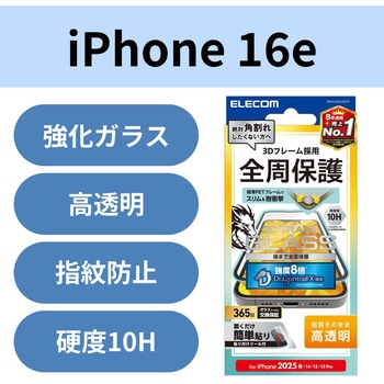 iPhone16 ガラスフィルム 高透明 全面保護 365日交換保証 表面硬度10H 角割れ防止 フレーム付 指紋防止 エレコム 翌々日出荷