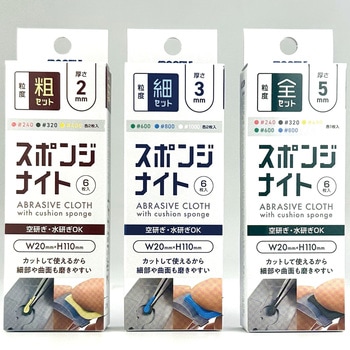 耐久性の高い耐水ペーパーヤスリで、裏面にわかりやすい番手色別ラインを採用しています。