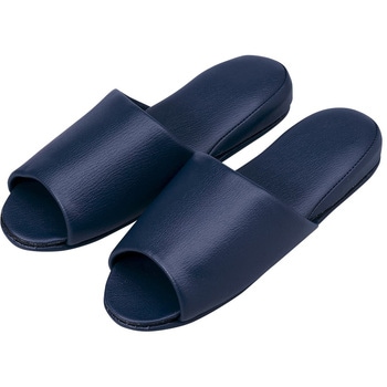 抗菌レザー調スリッパ(前開き) 10ソクグミ ダークブルー