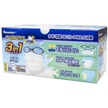 リーダーサージカルマスク 3in1 ふつうサイズ 個包装 シルクタッチ日進医療器