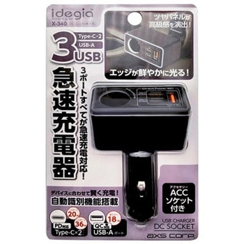 カープラグ部からも充電できる、DC12V用セパレートタイプの増設ソケット。カープラグ部 : USB PD(Power Delivery)対応、最大20W。USB-Aポートは急速充電対応、最大18W。2ポート同時使用時は合計最大15W出力。(2ポート共5V出力)ソケット部 : USB-Aを2ポート搭載。2口合計最大12W。USBコネクタの表も裏も向きを気にせず挿せるリバーシブルUSBポート。自動識別IC搭載。iPad/iPhone/iPod/スマートフォン/タブレット等を自動的に識別し、最適な電流で充電できます。約1mの電源コード。自由な取り回しができるセパレートタイプ。両面テープで貼るだけの簡単装着。プラグ部・ソケット部、それぞれ通電確認可能なブルーLED搭載。
