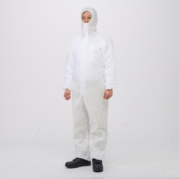 JIS規格に準拠した機能性の高い生地を使用した防護服になります。 SMS製(スパンボンド+メルトブロー+スパンボンド)の防護服で、柔軟性に富み、優れた通気性と良好なバリア性を発揮します。 袖口ゴム入、背ウエストゴム入、フードゴム入、裾口ゴム入でしっかりフィットします。 便利な内ポケット付になります。 通気性が良く、ヒートストレスを緩和します。