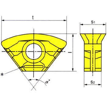 形状六角形80°厚さ許容差(mm)±0.025内接円許容差(mm)±0.025穴の有無ありコーナー高さ許容差(mm)±0.013穴の形状一部円筒穴両面40°~60°チップブレーカ両面