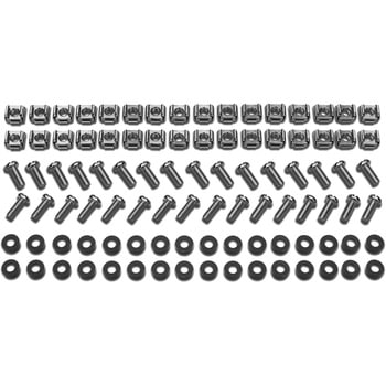 四角い穴の付いたマウント レールを備えたエンクロージャに機器を取り付けるための M6 金具。 32 セットの M6 ケージ ナット、ナイロン ワッシャ、およびマイナス/プラス ネジ。
