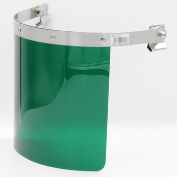 炉周辺作業(溶融した鉄・ガラスを扱う現場)輻射(放射)熱からの目を守る防災面です。両面アルミコーティング仕様です。