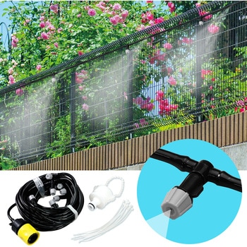蛇口にさすだけで噴霧!暑さ対策に!水道水だけで手軽にミスト!蛇口にさすだけで10カ所のノズルから噴霧するミストシャワーのホースセットです。地面から2~3mが設置に適した高さです。一般的な丸型の蛇口にご使用ください。