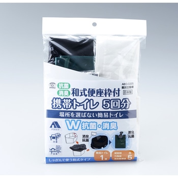 使用方法便座に汚物袋をかぶせて用を足します。その後上から凝固剤をふりかけて尿を固めて汚物袋の口を縛り-処理袋で二重に縛ってから各自治体の指示に従い廃棄してください。※凝固剤は付属のスプーン1杯(約7.5g)で約400mlの尿をゼリー状に固められます。材質(凝固剤)高分子吸水樹脂、(汚物袋・処理袋)ポリエチレン樹脂、(スプーン)ポリプロピレン樹脂寸法(mm)305×110×245使用可能回数50回分