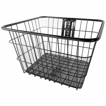 荷物の落下を防止する底メッシュ仕様の角形前カゴです。カゴ上部に太パイプ採用しているため丈夫。