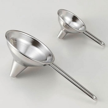 漏斗(ロート)・じょうごとは、粉体や液体を口径の広い部分に投入し、口径の狭い穴や筒から出す事で別の容器に効率良く移す為の道具です。研究機関や製造、調理の現場で使用されています。「粉体漏斗」と呼ばれる粉体用のロートは、粉が詰まらない様に吐出する部分の口径が液体用よりも広くなっています。素材はガラスや陶器、ステンレス、アルミ、樹脂など様々です。化学実験の場ではガラス製のロートが一般的に使用されています。吐出部分にフィルターが付いているロートも存在します。
