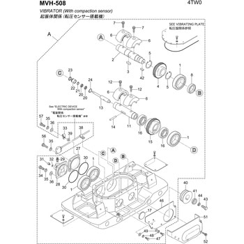 偏心振子の回転により、起振体ケース内のオイルを潤滑させ、ベアリングに適切な潤滑作用を与えることで、起振体の耐久性向上を実現しました。(MVC-40HW・50H・T90)