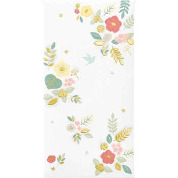 どんなシーンでも使いやすい、お祝いのイメージに合う花と鳥をあしらった万円袋。ふんわり優しくてはなやかな、お祝いの気持ちがぎゅっと詰まったデザインです。立体感のある箔押しがはなやかさとお祝いの雰囲気を演出します。