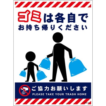 ゴミは各自持ち帰り標識PP縦大H600XW450グリーンクロス
