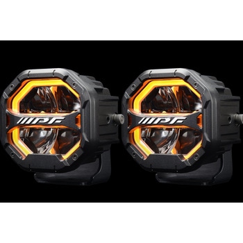 北米のトレンド スタイル、角形LEDオフロード(R)ランプ4インチサイズ。超高輝度LED x 4個搭載、明るさ4,800lm(ルーメン)・最光高度56,000cd(カンデラ)を実現。1ルクスでは、距離:230m / 幅:28mまでの範囲を照射。アンバー/ホワイト2色のマーカーランプは付属のスイッチで切替可能で、明るさ300カンデラ以下の「その他の灯火」に準拠しています。IPFロゴが印象的なダイキャスト製エクストリーム・ガードリムが過酷な状況下で灯体をしっかりと守り、オクタゴン(8角形)のメカニカルなデザインが車両をラギッドな印象に引き立てます。防滴スイッチ(インジケーターランプ付)・12Vリレー・10Aヒューズ・マーカーランプ用イルミネーション切り替えスイッチ付。防水・防塵性能:IP68、コネクター部からの水侵入を防ぐ為に、信頼性の高いDT(4極)防水コネクターを使用。過酷な環境下でも水の侵入を防止。10Gまでの耐震性を持ち、耐衝撃性にも優れた強靭なボディ。-30℃~+70℃(-22?~+158?)までの環境下でも使用可能です。