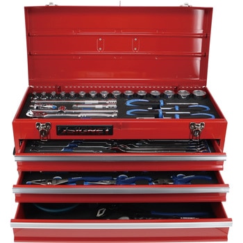 3段式のツールボックスに、1/2DRのソケット、レンチ類と、ペンチ類をセットしたベーシックな工具セットです。