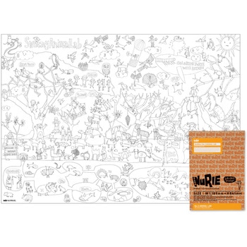 大きいぬりえのNuRIEシリーズ。独特のタッチで描かれたヌーリエオリのアートピースの大きさは、なんと巨大なA0サイズ(1,189mm×841mm)。この大きなキャンバスには、愉快な物語が所せましと紡がれており、色を塗るたびに新たな発見をすること間違いなし。大人も子供もみんなでワイワイガヤガヤとぬりえを楽しめて、あなただけのオリジナルアートが完成します。