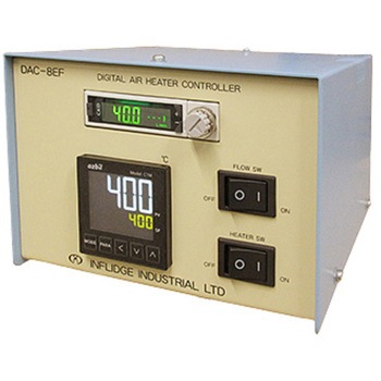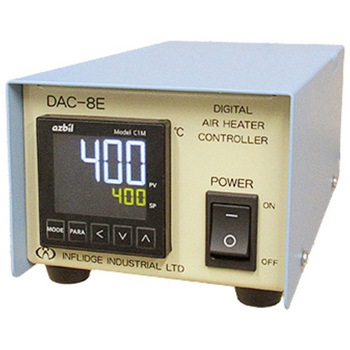 デジタル温度調節器 DAC-8Eは、スーパーエアヒーターの熱風温度を精密にコントロールします。スーパーエアヒータと接続するだけで、細かな温度設定及び、温度管理を容易に行えます。製造条件の安定化(再現性)を望むお客様にお勧めいたします。安定した熱風温度全温度範囲でオートチューニングが可能です。立ち上がりの早いエアヒータに適した制御方式を採用しています。小型・軽量のコンパクトサイズです。上限、下限温度警報機能などによって安全確保のための回路、作業手順作りのお役にたちます。