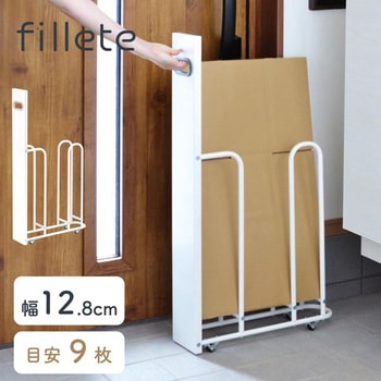 すき間を活用して段ボールを一時置き、キャスターで出し入れできる段ボールストッカー。玄関やクローゼットの中、冷蔵庫の横に、段ボールや紙袋をストックできる隙間ラック。前面パネルで隠す収納に。スチール素材なので、前面パネルにはマグネットアイテムをつけられる。柔らかシリコン素材でカバーされた持ち手は、手になじんで出し入れをサポート。段ボールをストックしたら、そのまま紐で縛れる浮かせる構造。