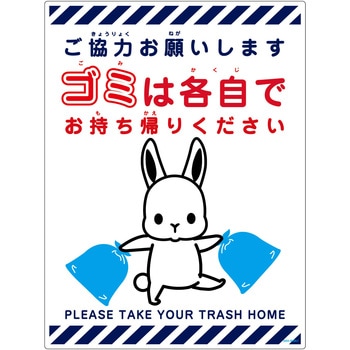 ゴミは各自持ち帰り標識PP縦大H600XW450グリーンクロス