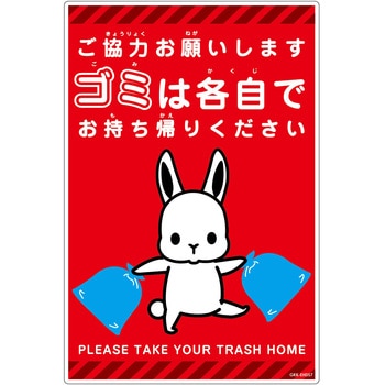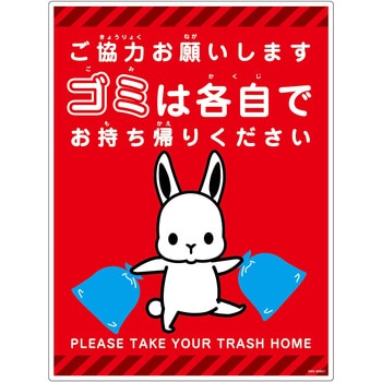 ゴミは各自持ち帰り標識動物柄PP縦小赤H450XW300グリーンクロス
