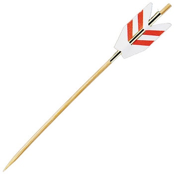 破魔矢のカタチの紙飾りを付けた竹串です。縁起を祝うための矢串と言う事で正月や祝い事に向きます。
